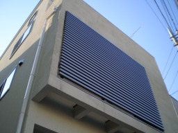 当初2棟計画案もあがりましたが、地域性を考え3棟としました。 前面道路は北道路のため、窓には大きなアルミのスリットを設置し、アクセントと都会的なシャープさを考えました。 また敷地延長の物件は、南に窓を多数作って階段を挟み、採光が取れるよう配慮しました。
